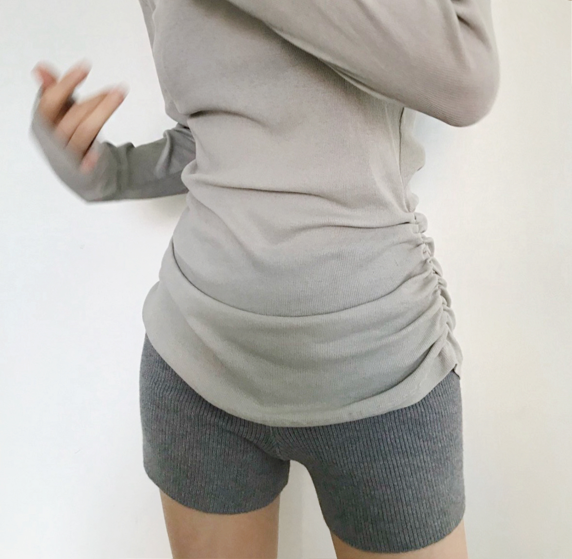 [다빈추천♥] 슬림핏 셔링 롱 슬리브 탑 ( 2 color )