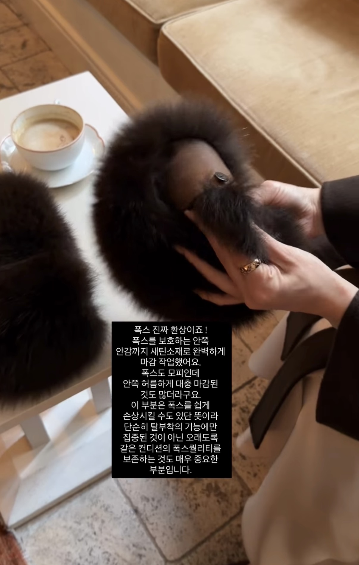 페미닌한 무드로 폭스 디테일을