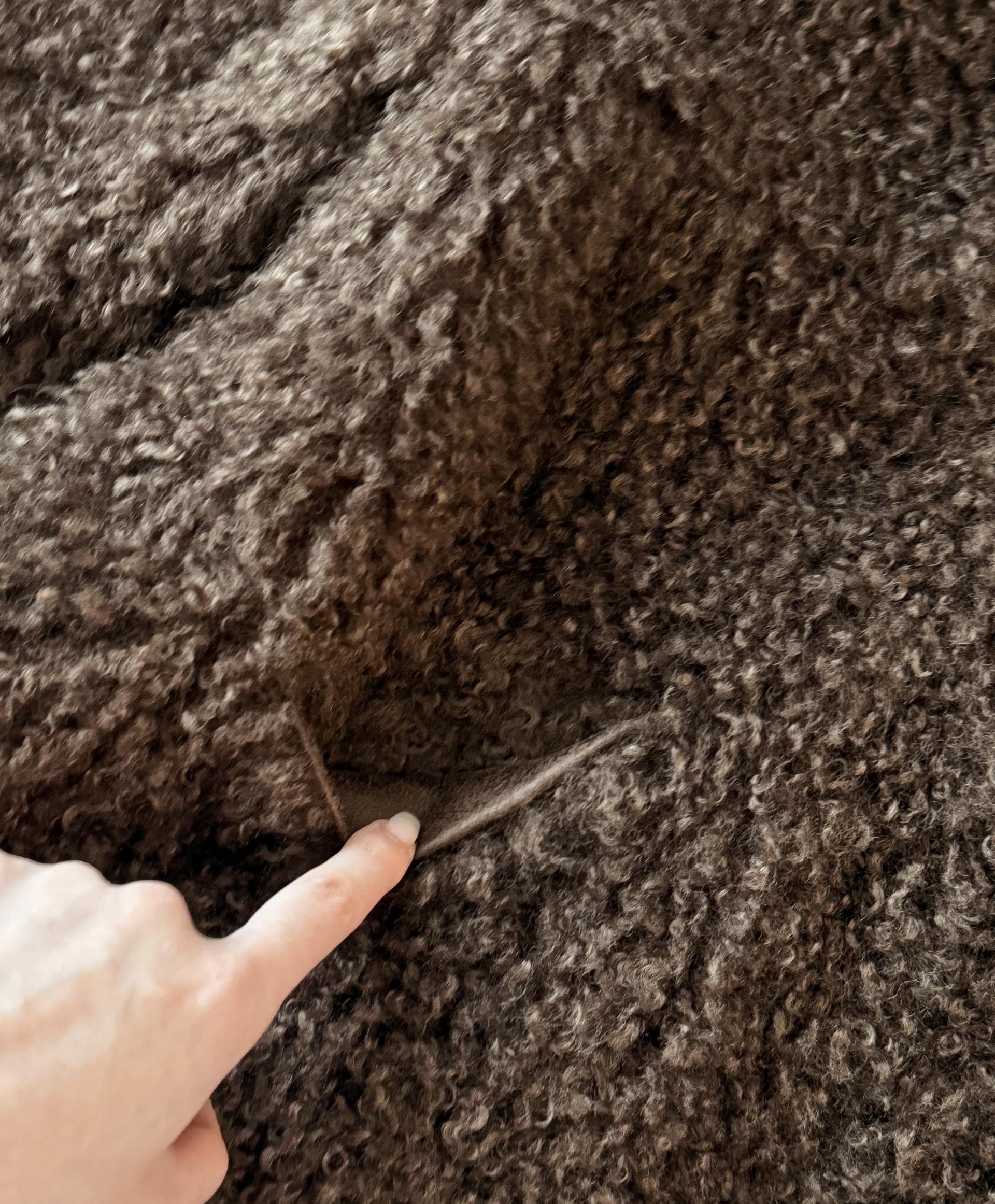리얼퍼가 아닌 신소재 에코퍼 원단으로 구현해낸 이 퍼 소재는
