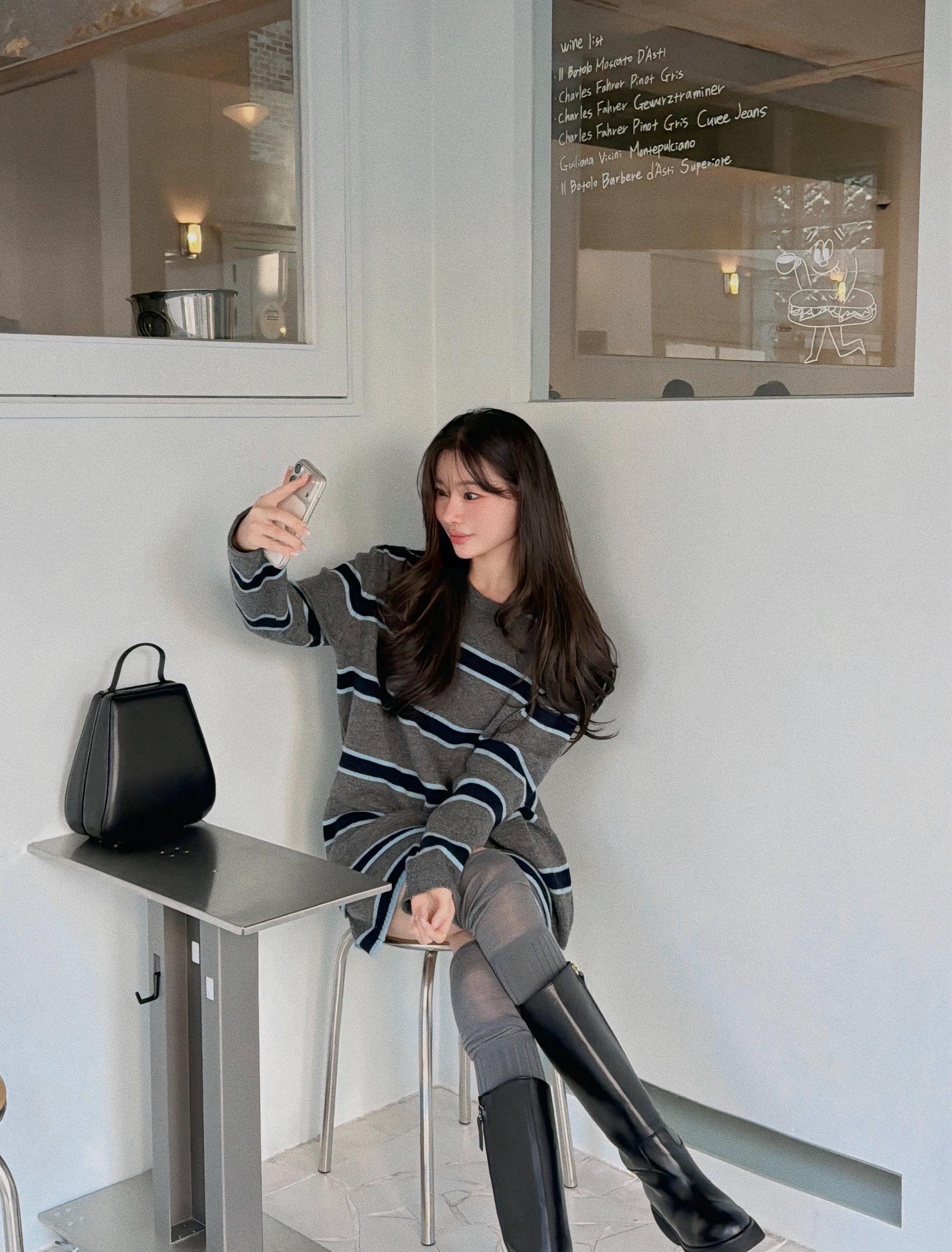 부드럽게 흐르는 루즈 핏의 니트 탑과