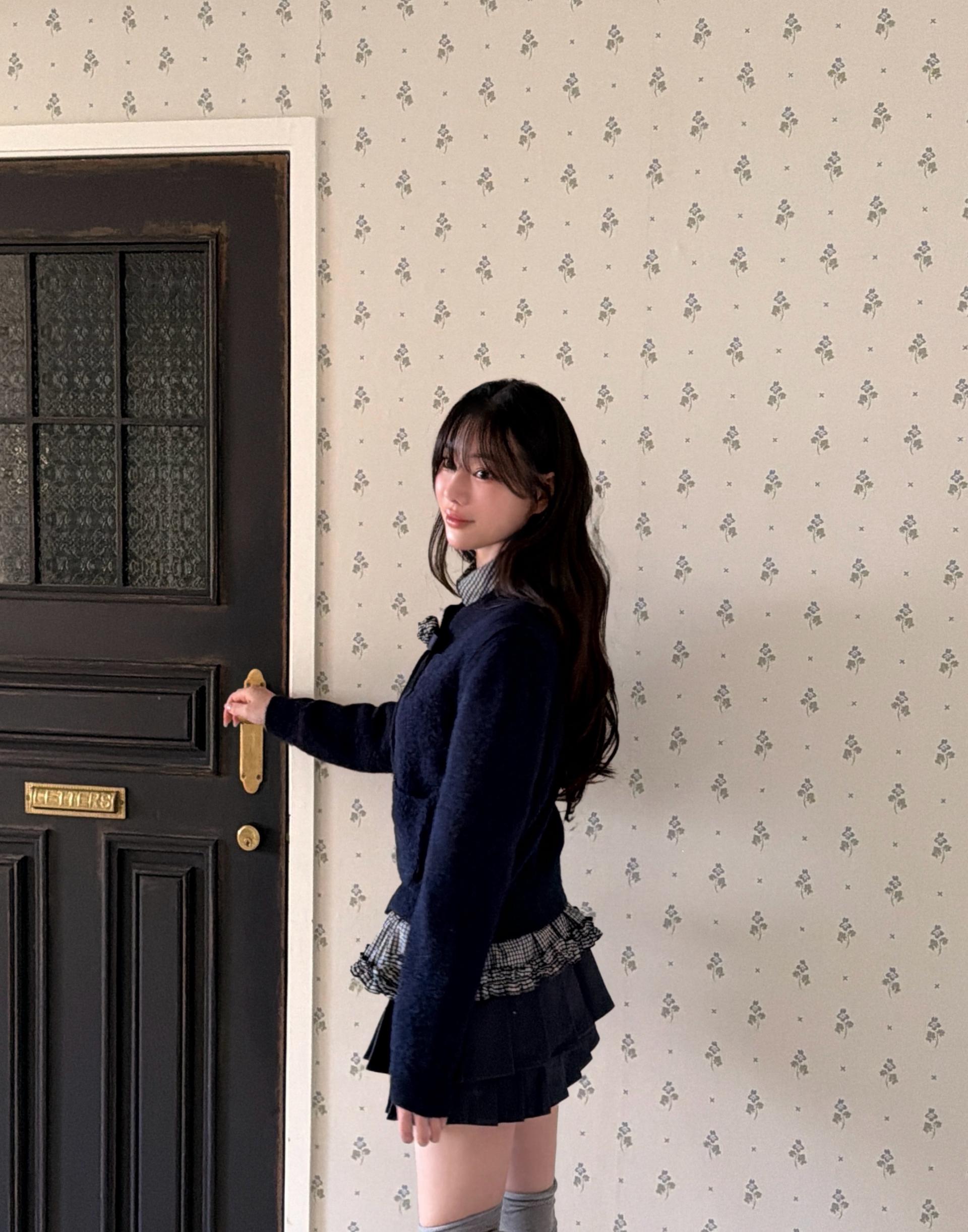 함께 출시된 페플럼 프릴 셔츠의 네이비 체크와