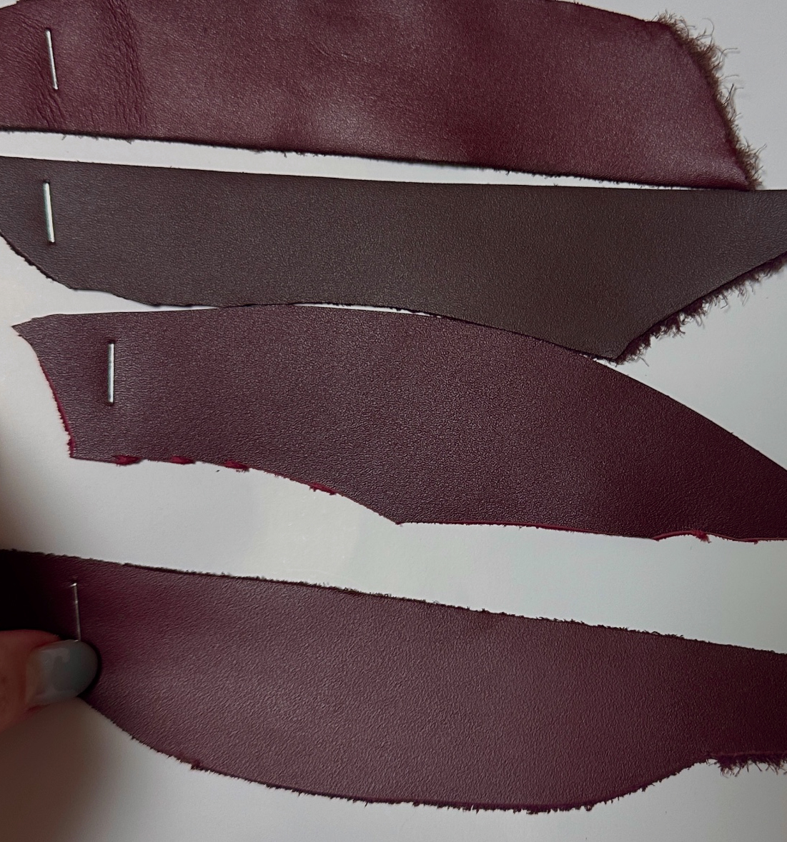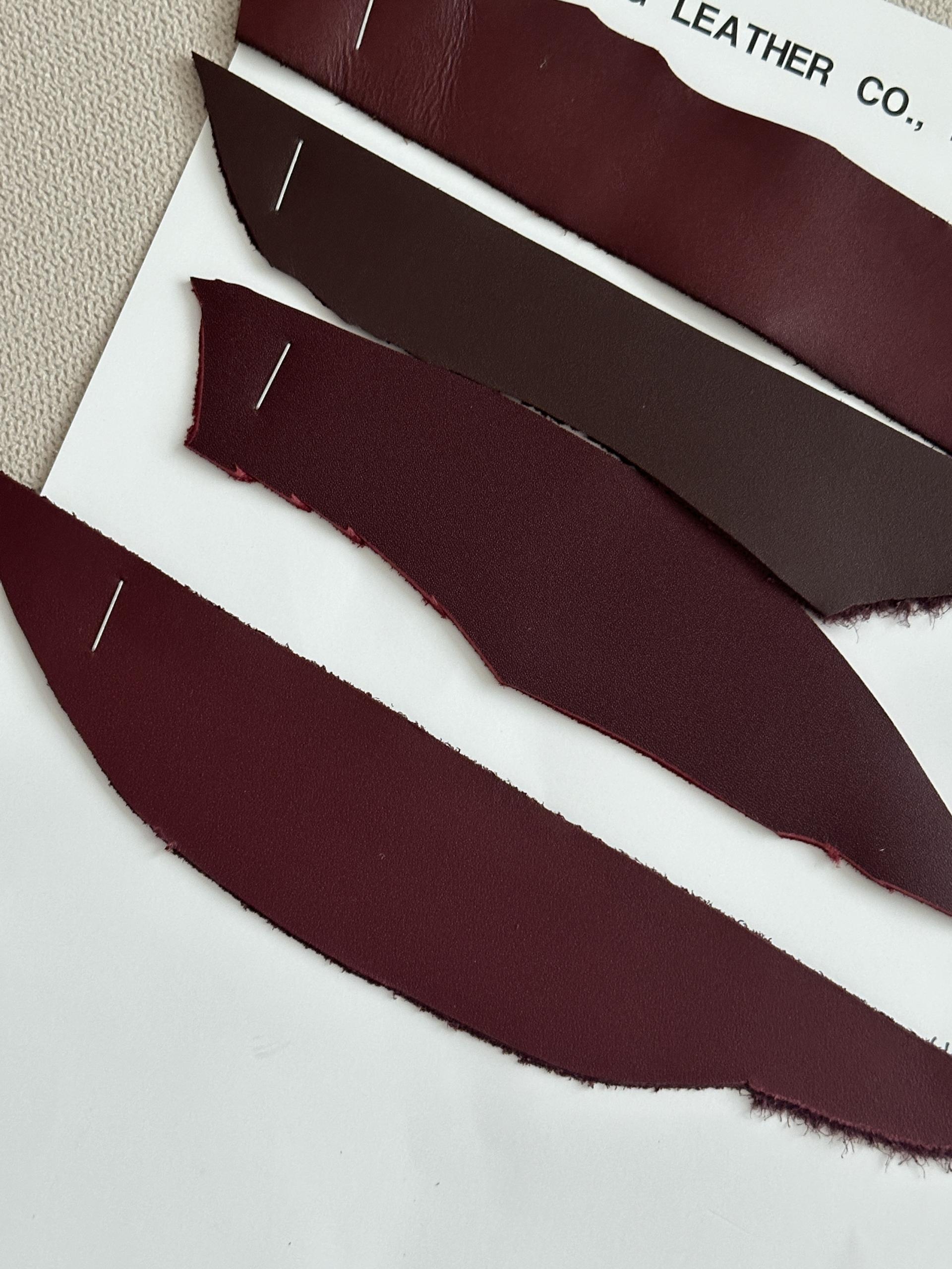버건디 빛을 띄는 수많은 가죽 종류들 중